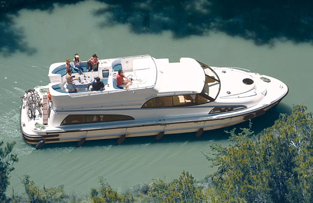 - Zweiter Steuerstand, Sonnendeck mit Biminitop, Landstrom, 220V wenn der Motor läuft, elektrischer Grill und kleiner Kühlschrank am Außendeck, Mikrowelle, LCD-Bildschirm im Salon, DVD, Musiksystem, Klimaanlage